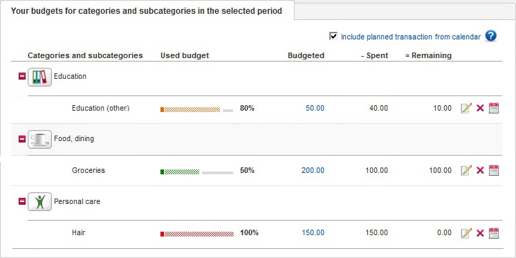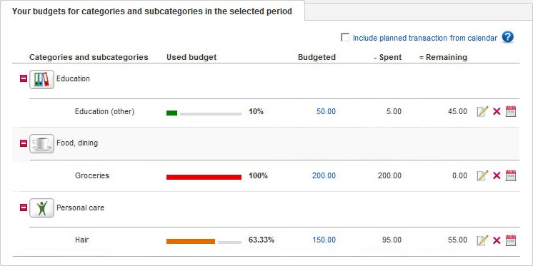 You can define your expenses, specifying the amounts you want to allocate per month to individual spending categories and subcategories.