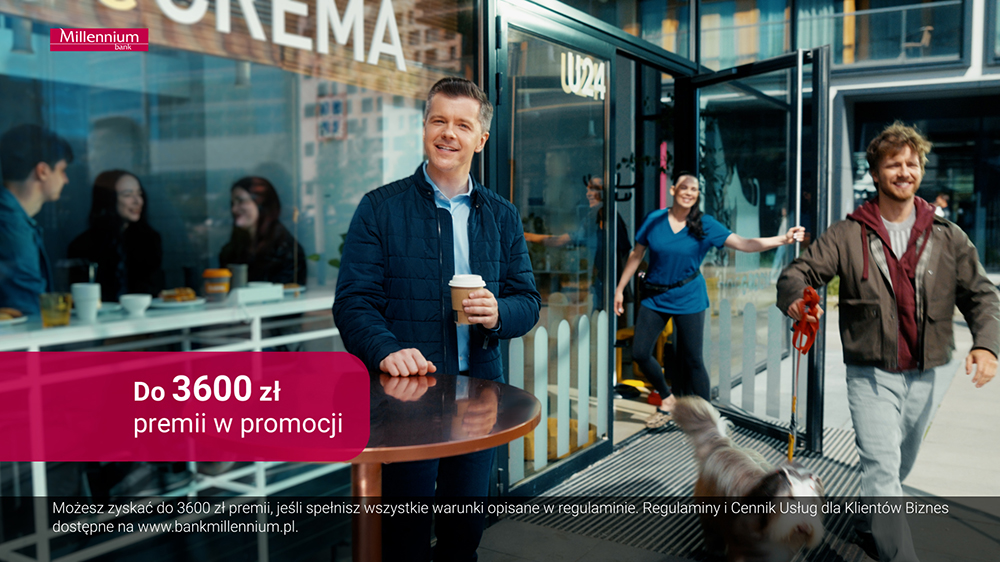 - Mój biznes to dbanie o innych, a Bank Millennium dba o Twoją firmę i oferuje Ci prowadzenie Konta Mój Biznes za 0 zł przez 2 lata w promocji. Czy duży, czy mały każdy klient ma u mnie super obsługę i jeszcze dostanie coś ekstra. A w Banku Millennium możesz dostać w promocji ekstra premię do 3600 zł. Otwórz Konto Mój Biznes i zadbaj o swoją firmę – przekonują w materiale Radosław Kotarski i Maciej Musiał oraz właścicielka salonu piękności dla psów.